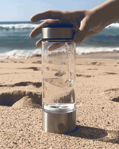 When you press this button a process will start where the bottle infuses water with hydrogen through a process called electrolysis.
