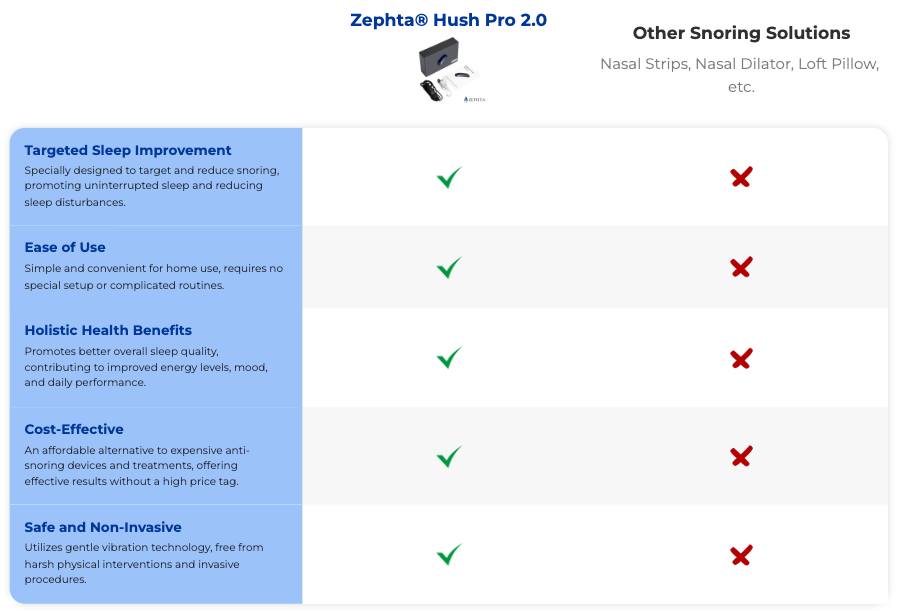 The Zephta® Hush Pro 2.0, designed by sleep experts, offers an effective, at-home solution for snoring at a fraction of the cost of professional treatments.